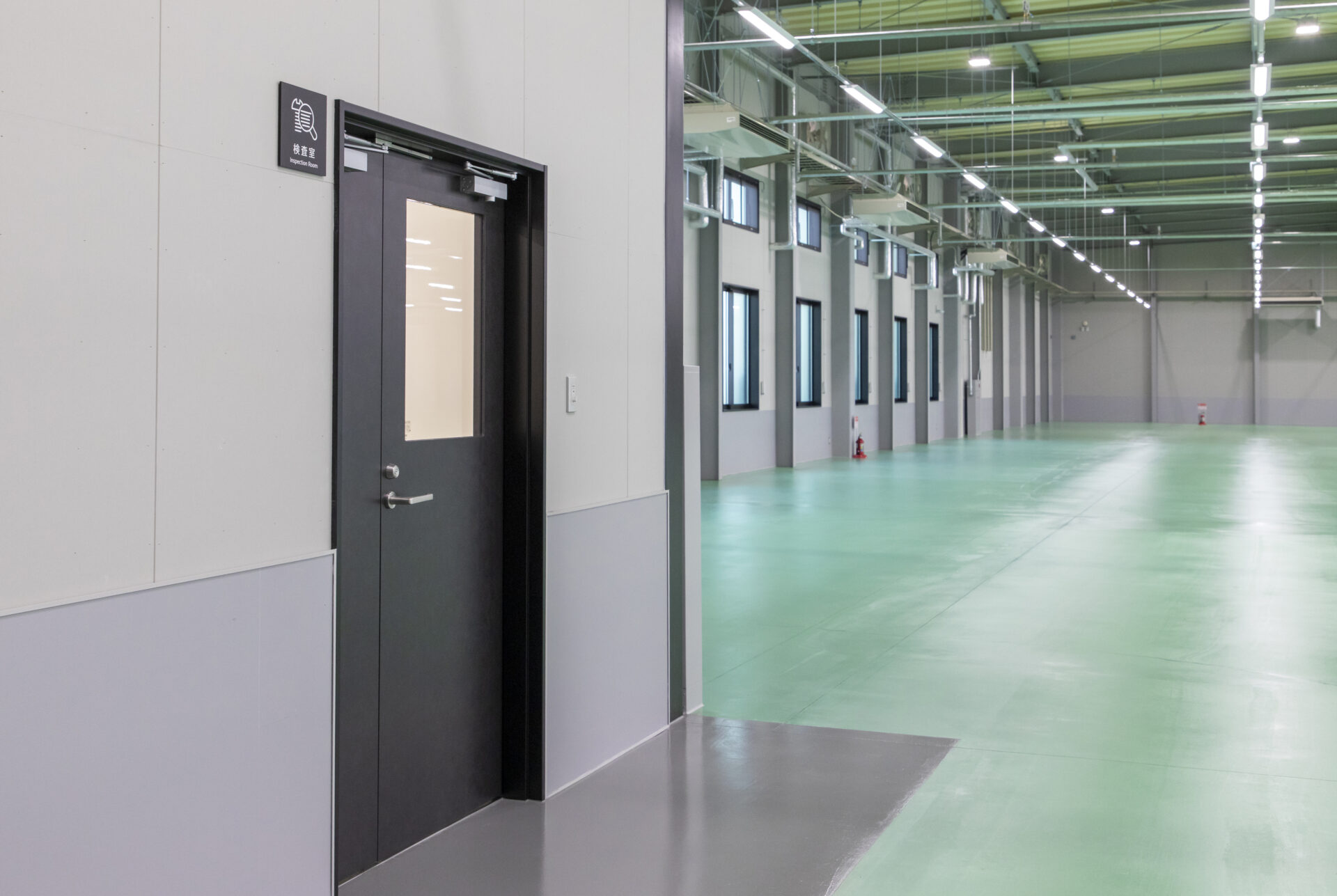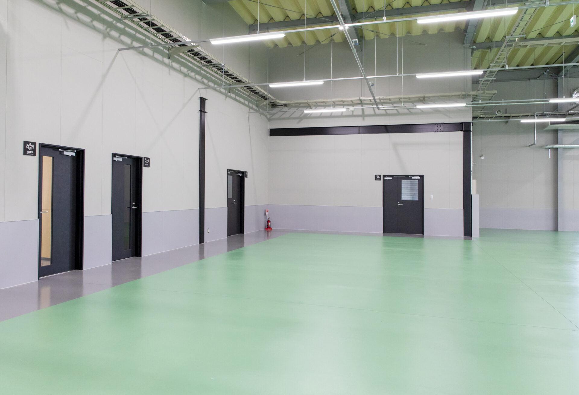 特にこだわったのが、工場内のメインエリアとなるカラーコンクリート土間です。機械設置や製品ストックに直結するため、広大な面積においても不陸や段差が発生しないよう、施工方法を事前に綿密に検討しました。土間厚は200mmのダブル配筋とし、強度と耐久性を確保。施工精度を最大限高めることで、長期的な使用に耐える高品質な床仕上げを実現しています。