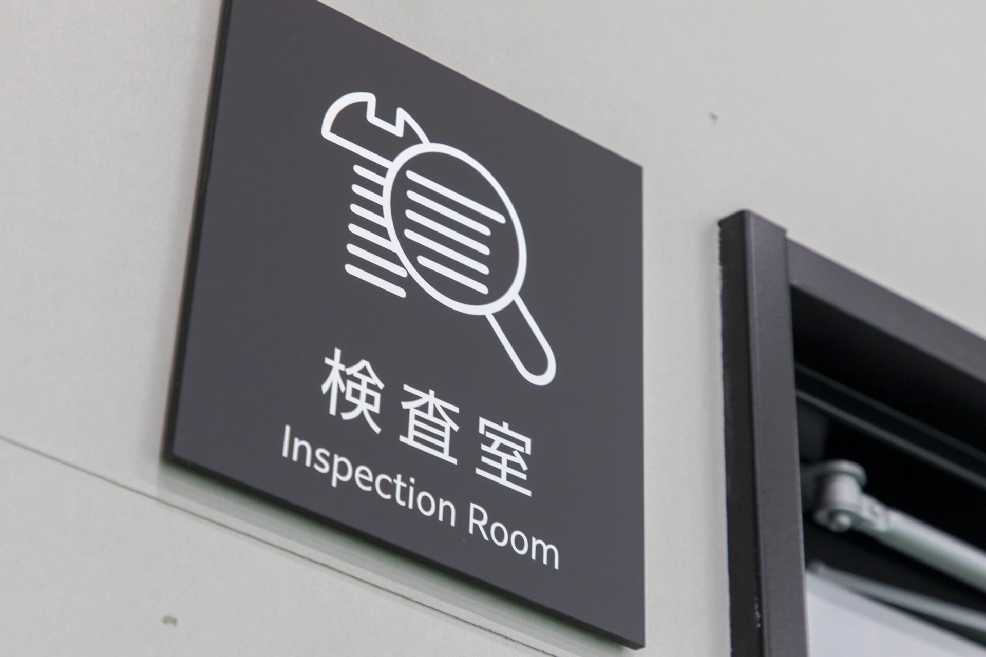 検査室周辺では、ピクトグラムを用いたサイン計画を採用し、直感的に用途が理解できる設計としました。また、ステンレス製の大型シンクを設置した洗浄スペースは、耐久性と衛生性を両立し、日常的な使用にも配慮しています。