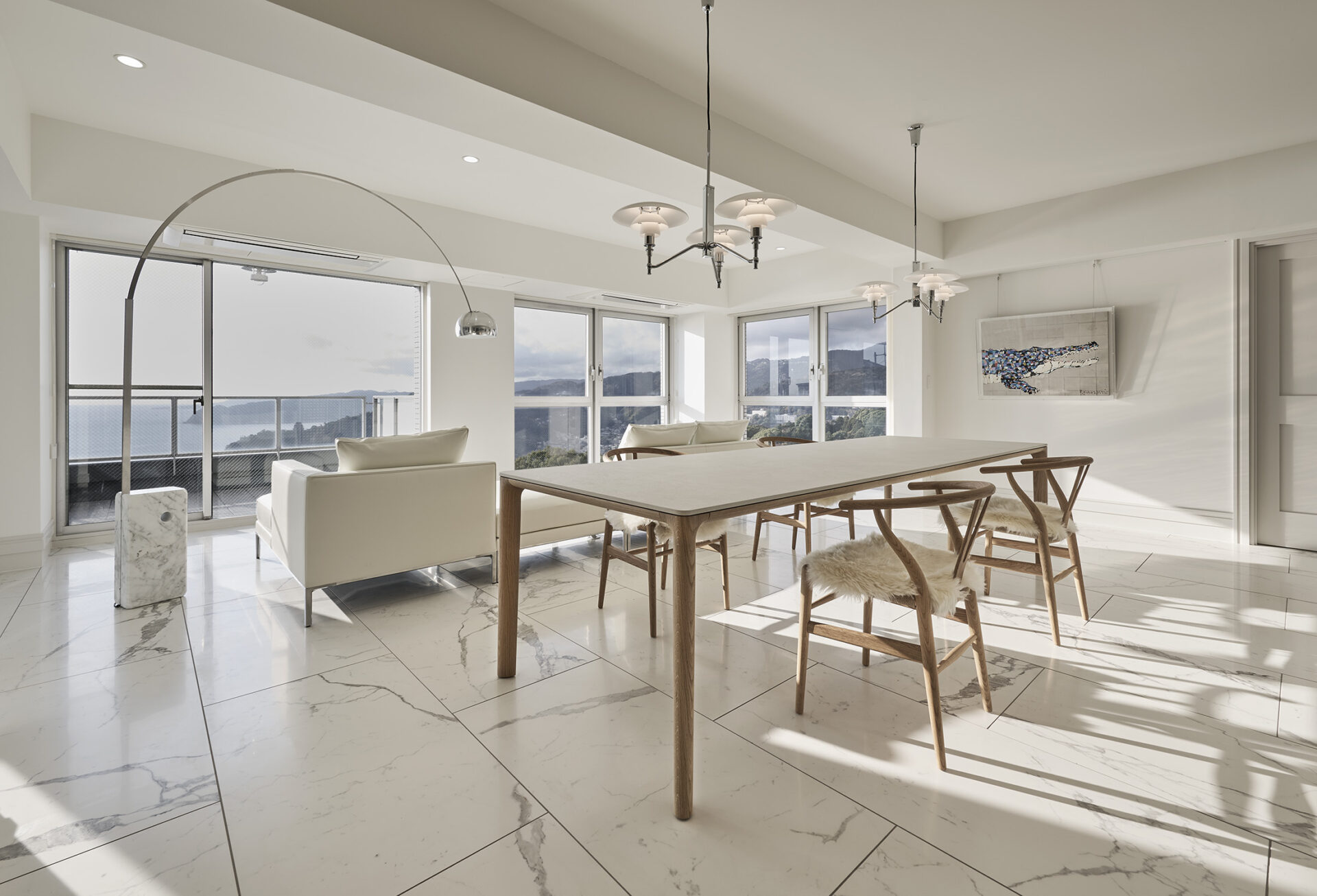 景色を主役にした白基調の上質空間リノベーション ― 熱海の家―
