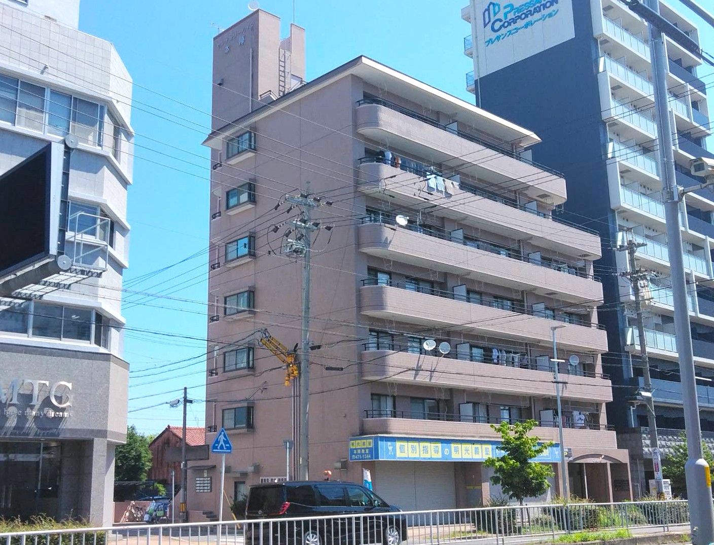 愛知県名古屋市中村区の賃貸マンションにて、外壁塗装と屋上防水の改修工事を行った。経年劣化に伴う退色や微細なひび割れを是正し、美観の回復と漏水の未然防止を同時に図るのが目的である。塗料は耐候性に優れるウレタン系を採用し、屋上はウレタン塗膜防水で連続した防水層を新設した。入居中物件であることを踏まえ、掲示・動線誘導・騒音対策などの安全管理を徹底し、約2か月半の工程で計画通りに完了した。