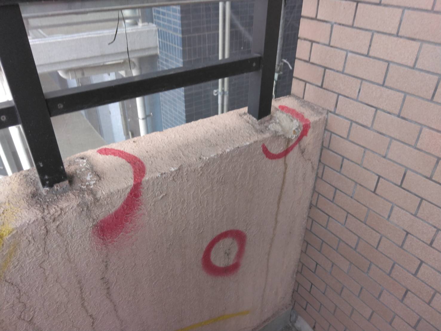 外観の色あせや目地の劣化が進行し、建物の印象が損なわれていた。特に賃貸物件では、第一印象が入居検討者の判断に直結するため、外壁の再塗装による清潔感の回復が急務であった。また、屋上やパラペットの取り合い部には経年による微細な亀裂が見られ、将来的な漏水リスクを低減する必要があった。工事期間中も居住者が日常生活を送るため、通行の安全確保、ベランダ使用制限の周知、洗濯物の飛散防止など、入居者配慮を前提にした工程管理が求められた。
